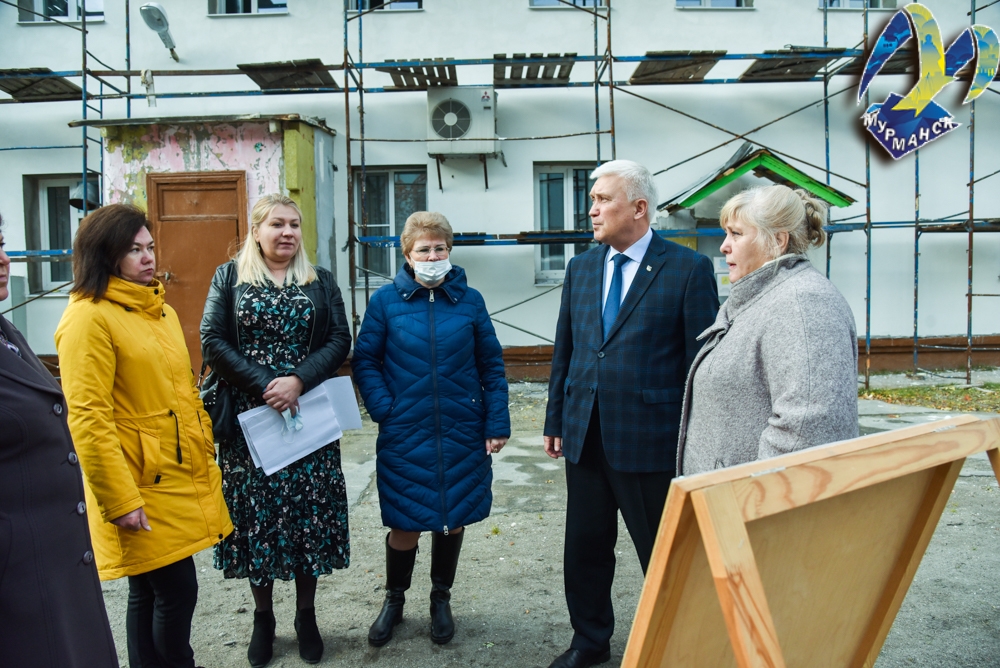 Сегодня глава муниципального образования город Мурманск Михаил Белошеев проверил, как выполняется ремонт фасада одного из зданий детского сада №38, расположенного по улице Ростинская.