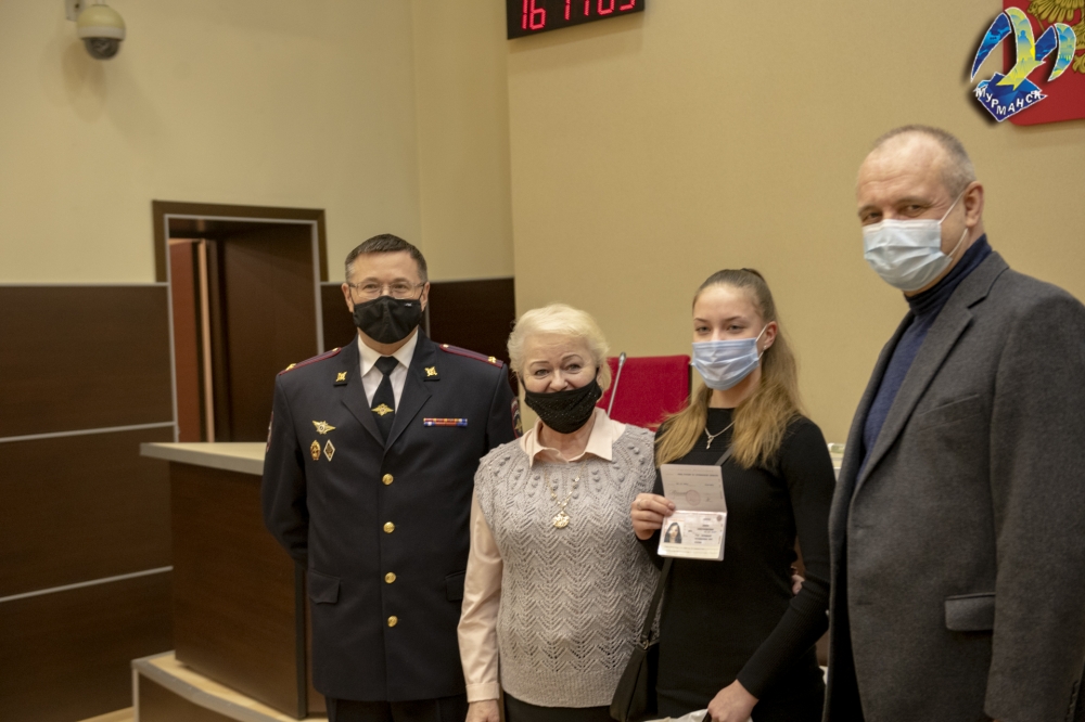 В торжественной церемонии приняли участие временно исполняющий полномочия главы муниципального образования город Мурманск Тамара Прямикова, заместитель председателя Совета депутатов города Мурманска Андрей Сысоев и начальник отдела по работе с гражданами РФ Управления по делам миграции УМВД России по Мурманской области, подполковник полиции Александр Саврасов.