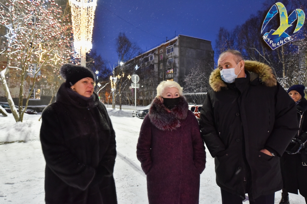 Сегодня временно исполняющий полномочия главы муниципального образования город Мурманск Тамара Прямикова и заместитель председателя Совета депутатов города Мурманска Андрей Сысоев выехали в микрорайон Роста областного центра. Как и в других районах города, здесь ведется активная работа по новогоднему оформлению улиц. На данный момент яркими огнями уже украшена площадь рядом с кинотеатром «Аврора», где также установлен главный символ предстоящих праздников – новогодняя елка. Не остался без внимания и сквер по улице Сафонова. Светодиодные конструкции «Салют» и «Снежинки», размещенные на территории, уже сейчас позволяют жителям микрорайона зарядиться энергией приближающегося торжества.
