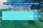 Для сравнения по данным на конец 2019 года было переведено в электронный вид более 78 тыс. кадастровых дел, что составляло 81% от общего количества, а на конец 2020 года уже было отсканировано более 87 тыс. дел, это составило 90% от общего количества.