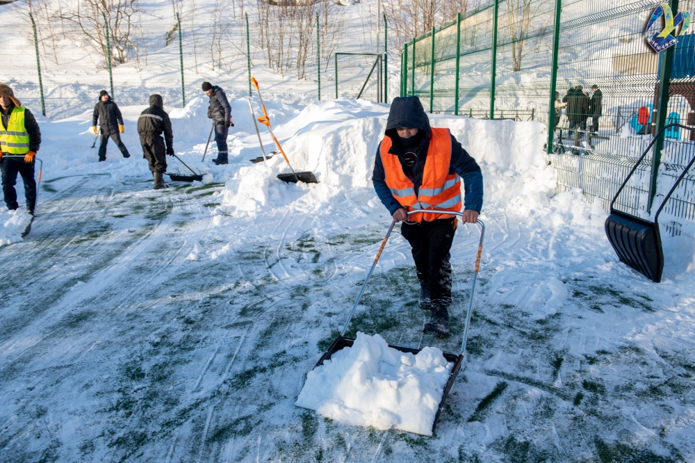 Всего комитет по физической культуре и спорту администрации города Мурманска следит за чистотой на 19 спортивных площадках. В работе ежедневно принимают участие 13 человек и восемь единиц техники. Только за предыдущую неделю с территории площадок вывезено более 3000 кубометров снега.