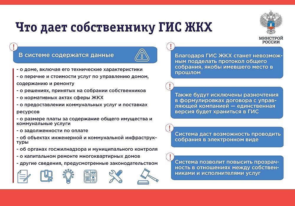 ГИС ЖКХ — это единый ресурс, где собираются данные о каждом многоквартирном доме, через ГИС ЖКХ граждане могут взаимодействовать с управляющими и ресурсоснабжающими организациями, ТСЖ, органами власти различных уровней. Система доступна по ссылке.