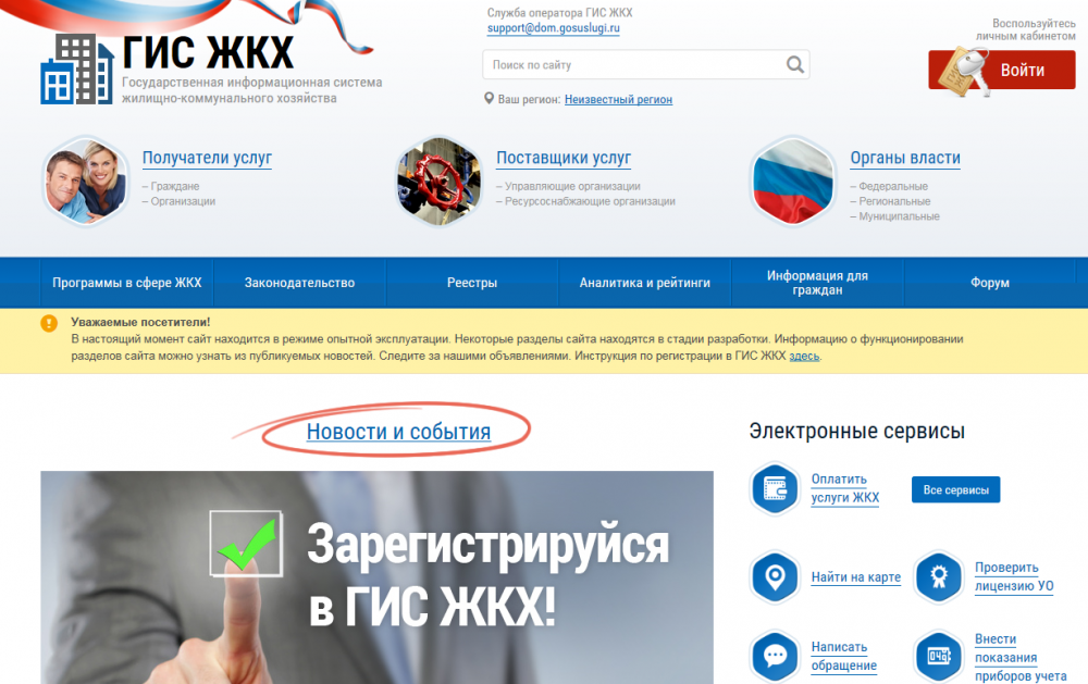 На сегодня ГИС ЖКХ интегрирована с единым порталом государственных и муниципальных услуг (Госуслуги), поэтому отдельная регистрация в системе не требуется — зайти можно через подтвержденную учетную запись «Госуслуг».