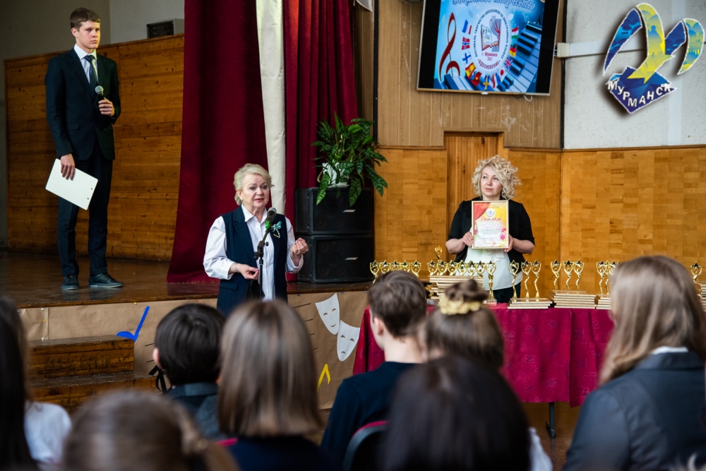 На закрытии фестиваля выступили победители номинаций «Вокальное творчество» (Мурманский международный лицей, гимназия № 2) и «Конкурс художественного чтения» (школа № 58, гимназия № 8).