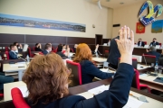 В рамках заседания Совета депутатов прошли публичные слушания о внесении изменений в Устав муниципального образования город Мурманск. В них приняли участие представители Общественной палаты Мурманской области, студенты высших учебных заведений.
