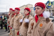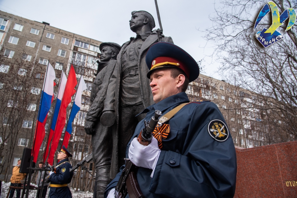 Маршрут «Вахты памяти» продолжился церемонией возложения цветов к народному памятнику воинам Полярной дивизии, а завершающим этапом стал митинг на территории мемориального комплекса в микрорайоне Абрам-мыс.