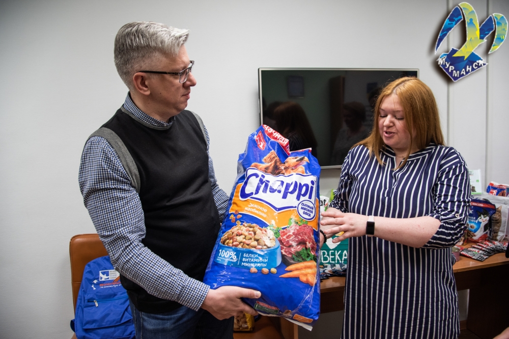 Сегодня заместитель председателя Совета депутатов города Мурманска Тамара Прямикова совместно с депутатами Совета депутатов города Мурманска посетили Центр развития волонтерского движения (ул. Ломоносова, 17/1). В эти дни на его базе проходит благотворительная акция по сбору кормов для животных «Добрые сердца».