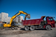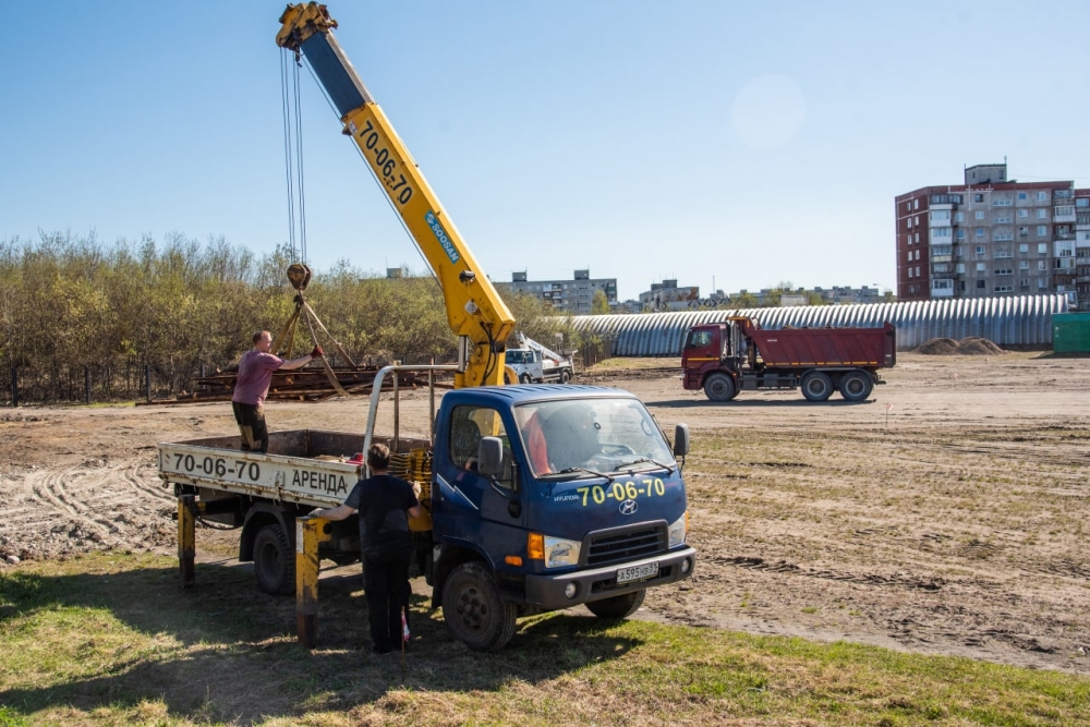 На объекте сейчас рабочие занимаются земляными работами, подготовкой места для установки мачт освещения, вывозом строительного мусора.