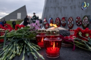 Несколько десятков лампад выстроились на постаменте Вечного огня и образовали слово "Помним". Собравшиеся почтили память всех, кто участвовал и погиб в самой страшной войне XX века.