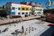 Работы по возведению здания и его отделке завершены, выполнено подключение ко всем инженерным сетям. Сейчас рабочие занимаются наведением порядка на территории и устройством площадок для детей.