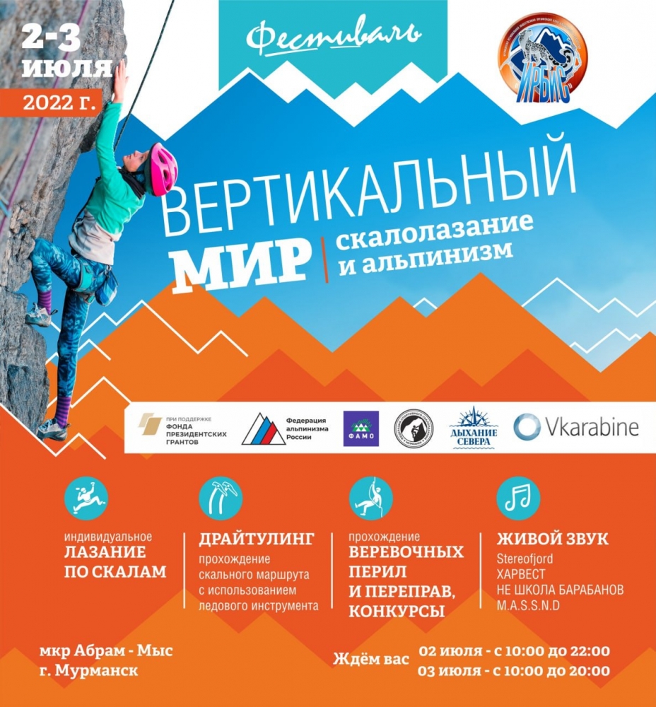Завтра, 2 июля, в районе скального массива микрорайона Абрам-Мыс стартует двухдневный Фестиваль скалолазания и альпинизма «Вертикальный МИР».