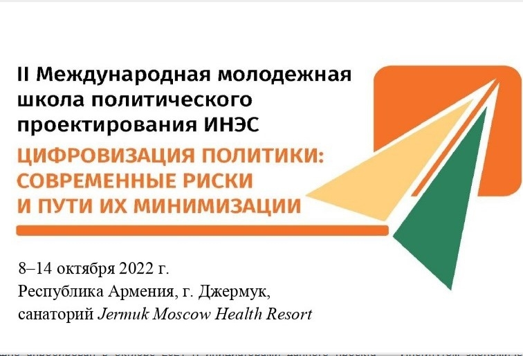 C 8 по 14 октября 2022 года в г. Джермук (Республика Армения) пройдет II Международная молодежная школа политического проектирования по направлению «Цифровизация политики: современные риски и пути их минимизации», организуемая ИНЭС и Фондом поддержки публичной дипломатии им. А.М. Горчакова.