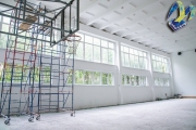 На сегодняшний день рабочие расширили оконные проемы, установили дополнительные стеклопакеты, покрасили потолок, выполнили штукатурные работы в раздевалках, душевых, туалетных комнатах, уложили новую плитку. Также подрядчик занимается ремонтом инженерных сетей.