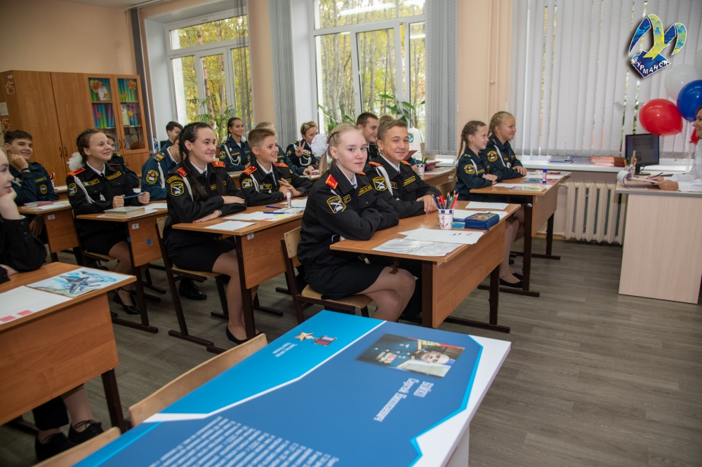Сегодня в Кадетской школе города Мурманска завершилось первое внеурочное занятие «Разговоры о важном». Тема классного часа — «Герои среди нас».