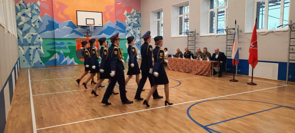 Ребята продемонстрировали навыки строевой подготовки, приемов и команд, а также движение строевым шагом по залу, воинское приветствие в движении.
