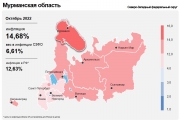 Годовая инфляция в Мурманской области замедляется в течение последних шести месяцев. В октябре она составила 14,7% после 15,4% в сентябре. На динамику цен в регионе оказали влияние расширение предложения на отдельных товарных рынках, а также снижение спроса на товары длительного пользования.
