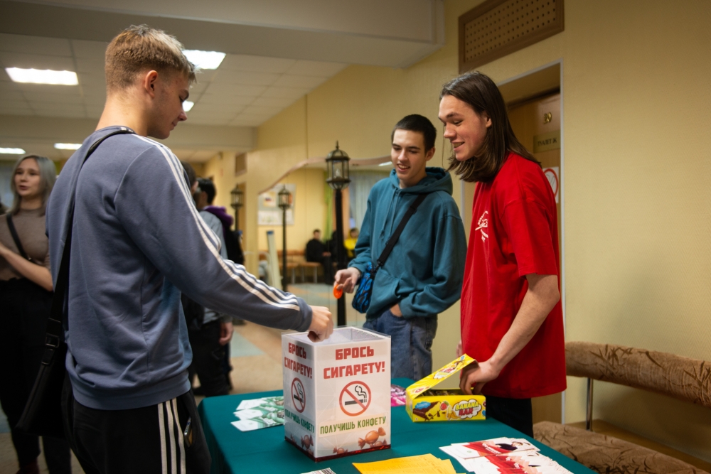 Сегодня в ДК «Судоремонтник» (ул. Заводская, 1) студенты Мурманского индустриального колледжа, а также старшеклассники школы № 3 приняли участие в двух акциях в рамках «Декады SOS»: «Брось сигарету — получишь конфету!» и «Молодежный формат».