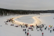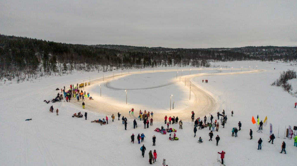 Длина ледовой дорожки составляет 700 метров. На льду установлены 32 опоры освещения. 90% использованного оборудования системы освещения отечественного производства.