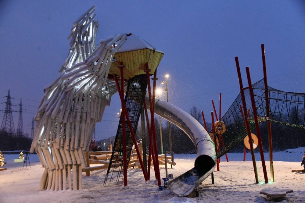 Такой концепт детской площадки выбрали сами мурманчане. Голосование проходило на портале «Наш Север». Уникальный игровой комплекс расположился в малой Долине Уюта. Сегодня в его открытии принял участие глава администрации города Мурманска Юрий Сердечкин.