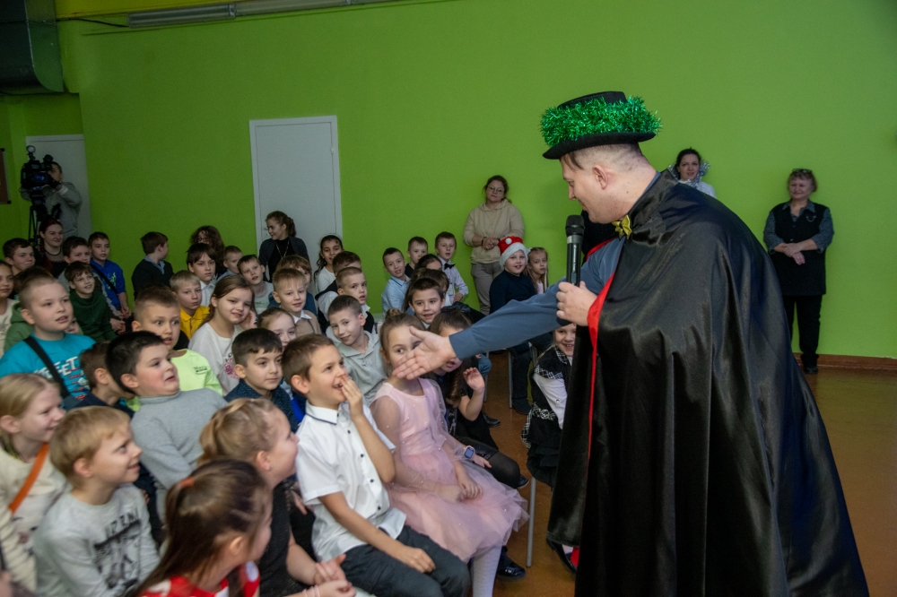 Организаторы создали для детей новогоднюю атмосферу: празднично украсили школьные помещения и подготовили тематическую программу «Сказка к нам приходит».