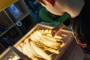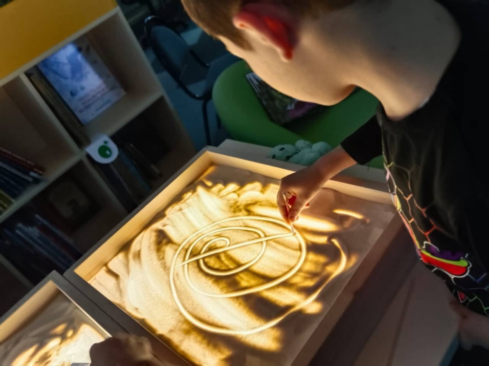 Гостям рассказали о технике рисования песком, когда и в какой стране возникло это мастерство, какое значение имеет для развития детей. Интересные факты юные мурманчане узнали из книги Джойса Сидмана «Живые спирали».