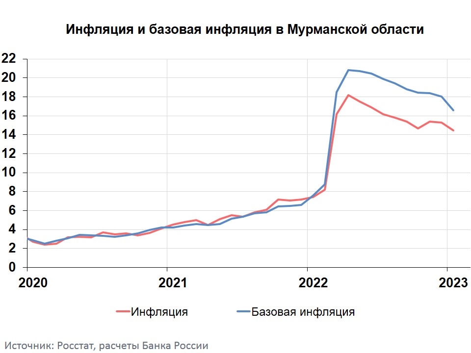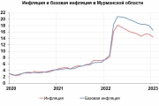 В январе 2023 года годовая инфляция в Мурманской области составила 14,5% после 15,3% месяцем ранее. На ее снижение повлияли увеличение предложения отдельных групп товаров и сдержанное потребление.