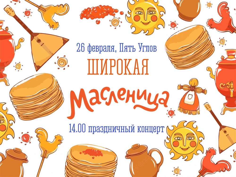 26 февраля, 12.00, Пять Углов, народное гулянье «Широкая Масленица»