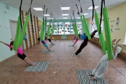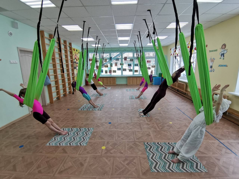 Под присмотром опытного инструктора ребята выполнили элементы аэройоги с использованием гамаков. Такие занятия способствуют гармоничному развитию всего мышечного комплекса ребенка, а также способствуют улучшению координации и выносливости.