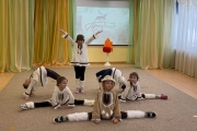 Тематическое мероприятие «Белый медвежонок в волшебной стране аэройоги» прошло сегодня в детском саду № 78 (ул. Капитана Буркова, 47). Открыл его зажигательный национальный саамский танец с элементами акробатики, который исполнили воспитанники учреждения. Затем маленькие мурманчане приступили к музыкально-спортивной разминке.
