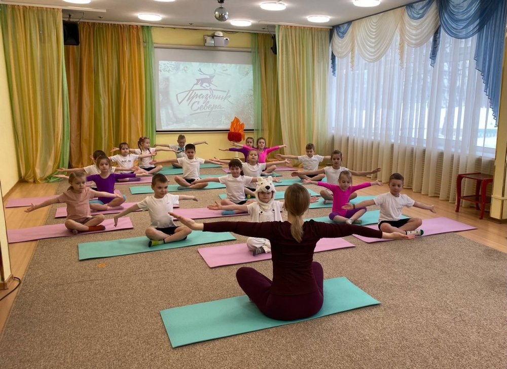Урок аэройоги прошел в рамках фестиваля физкультуры и спорта среди воспитанников дошкольных образовательных учреждений Мурманска «Белый медвежонок».