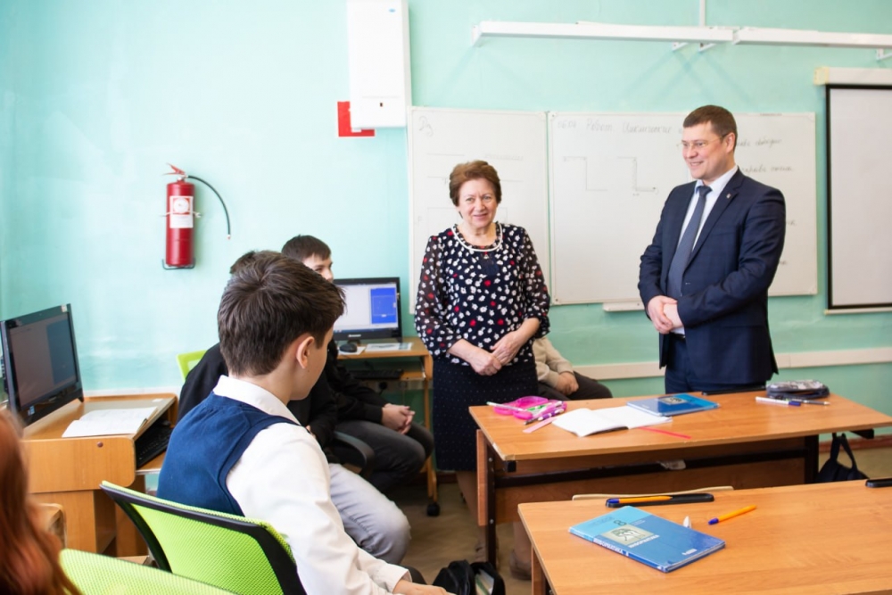 Один из победителей проекта «Арктическая школа» в направлении «Внутреннее (учебное) школьное пространство» - мурманская СОШ №20 (ул. Баумана, 40). Сегодня образовательное учреждение посетил глава администрации города Мурманска Юрий Сердечкин.