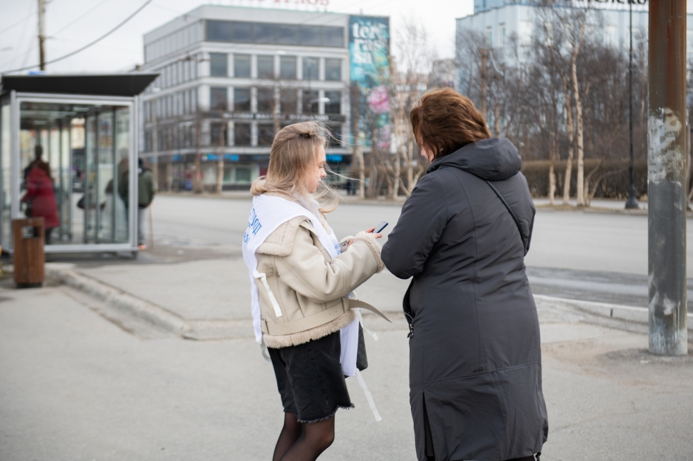 Анна Резниченко и Алена Бокарева принимают участие во Всероссийском голосовании второй год подряд. Они рассказали, что мурманчане интересуются представленными территориями и активно выбирают объекты благоустройства. Волонтеров проекта можно встретить в отделениях «Почты России», в крупных торговых центрах города, в образовательных организациях, в общественных местах, на крупных мероприятиях. Для того, чтобы подтвердить участие в голосовании, на мобильный телефон поступает код, который волонтер вносит в приложение.