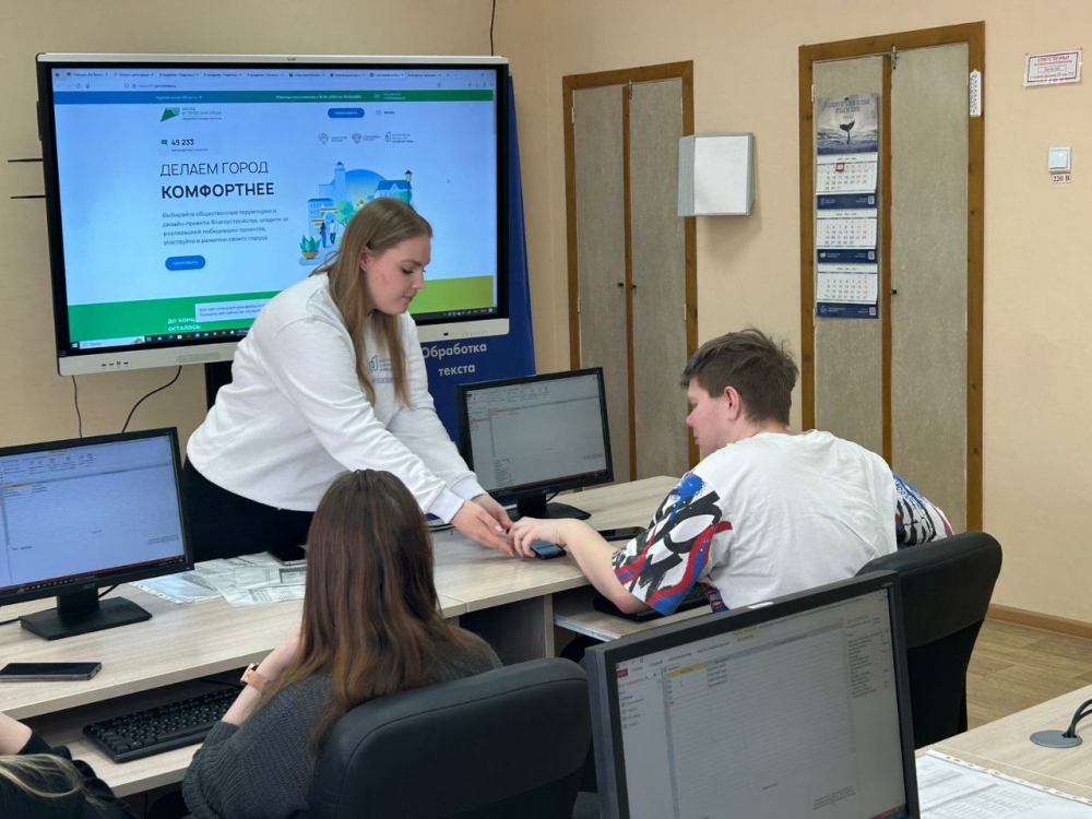 На этой неделе волонтёры посетили ГАПОУ МО «Мурманский индустриальный колледж», где рассказали о голосовании 150 студентам и с помощью специального приложения помогли ребятам проголосовать.