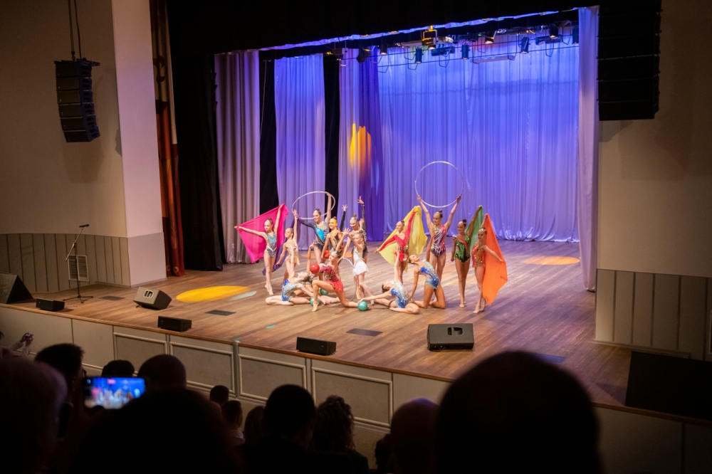Праздничная программа включала выступления по спортивной гимнастике, акробатике, фитнес-аэробике, фигурному катанию и художественной гимнастике, а также световое шоу и театр теней.