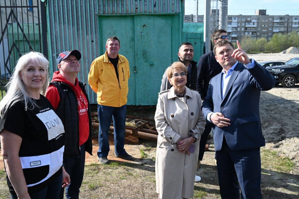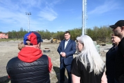 Продолжаются работы по реконструкции стадиона «Юность» спортивной школы № 6 (ул. Героев Рыбачьего, 8). На объекте уже выполнены работы по подготовке территории, разработке котлована, установлены 8 опор освещения. В настоящее время ведутся работы по монтажу прожекторов на мачтах. Ход работ оценили глава администрации города Мурманска Юрий Сердечкин и глава муниципального образования город Мурманск Игорь Морарь.