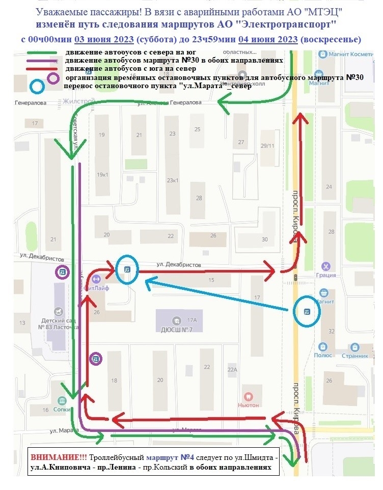 — маршруты автобусов будут проходить по улицам Советская, Алексея Генералова и Декабристов;