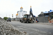 На Верхне-Ростинском шоссе также завершено фрезерование покрытия проезжей части, устройство выравнивающего слоя. Рабочие демонтируют и монтируют бортовой камень, выполняют разборку асфальтобетонного покрытия тротуаров.