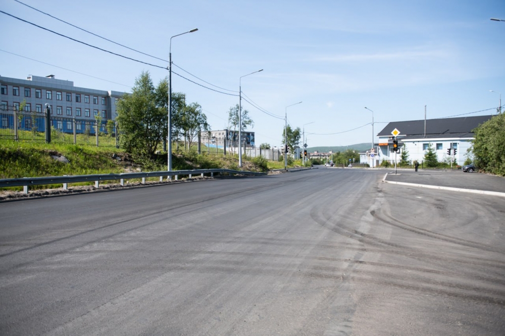 На ул. Шмидта, от ул. Капитана Егорова до ул. Академика Книповича, уложены выравнивающий и верхний слой асфальтобетонной смеси проезжей части, выполняется покрытие тротуаров. Общая готовность объекта — 80%. На просп. Кольском, от ул. Капитана Пономарева до ул. Морской, завершены работы по укладке выравнивающего слоя асфальтобетонной смеси проезжей части, рабочие укладывают верхний слой покрытия. Общее выполнение — 46%.