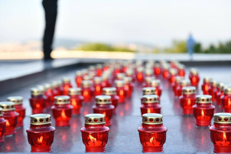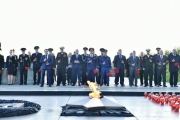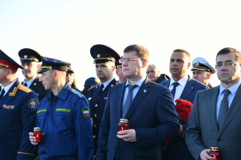 Собравшиеся почтили память погибших минутой молчания. На постаменте у Вечного огня из нескольких десятков лампад выстроили слово «Помним». В завершение мероприятия участники возложили цветы к мемориалу.