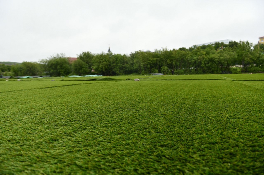 — Реконструкция территории была приостановлена в 2019 году. Год назад принял решение о выполнении поэтапных работ по благоустройству. В 2023 году мы возобновили работы. На подготовленное основание сейчас укладываем геотекстиль и искусственную траву, — рассказал Юрий Сердечкин.