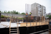 На сегодняшний день на объекте завершены работы по устройству фундамента. Выполняется монтаж, армирование к бетонированию монолитных конструкций стен и перекрытий подземной части здания, а также проводится вынос кабельных трасс.