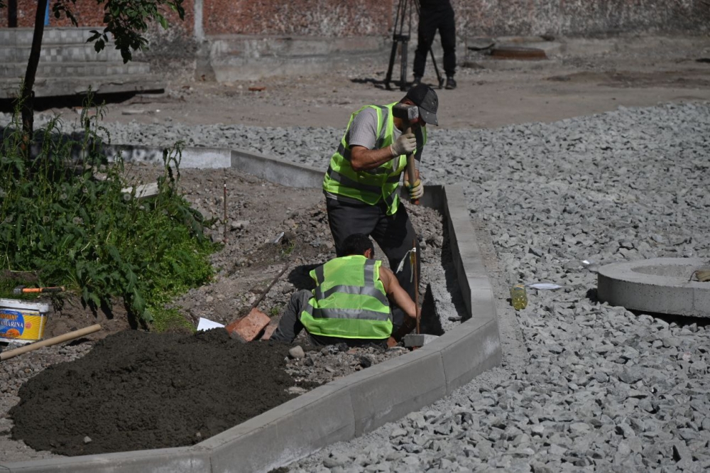 Сегодня глава администрации города Мурманска Юрий Сердечкин совместно с главой муниципального образования город Мурманск Игорем Морарем поверили ход работ по благоустройству двора по адресу пр. Связи 4-28.
