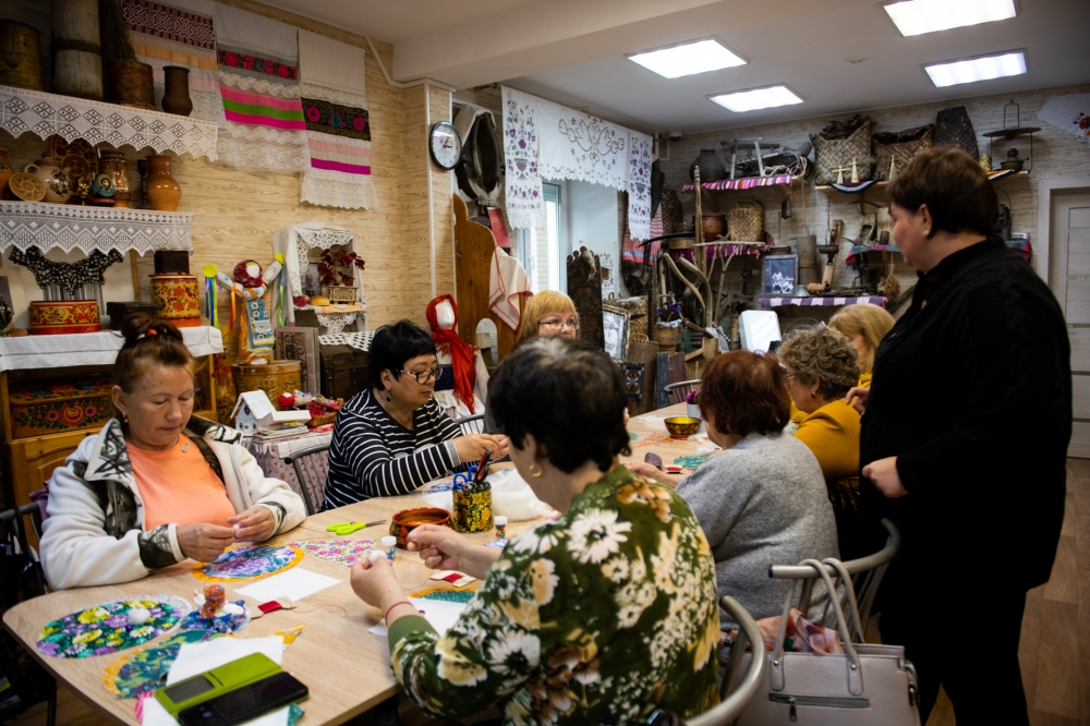 Сегодня в музее народного быта и традиционных ремесел «Рябиновый край» (ул. Сафонова, 28) состоялся мастер-класс для участников городского клуба старшего поколения. Мурманчане занимались изготовлением народной куклы «Колокольчик».