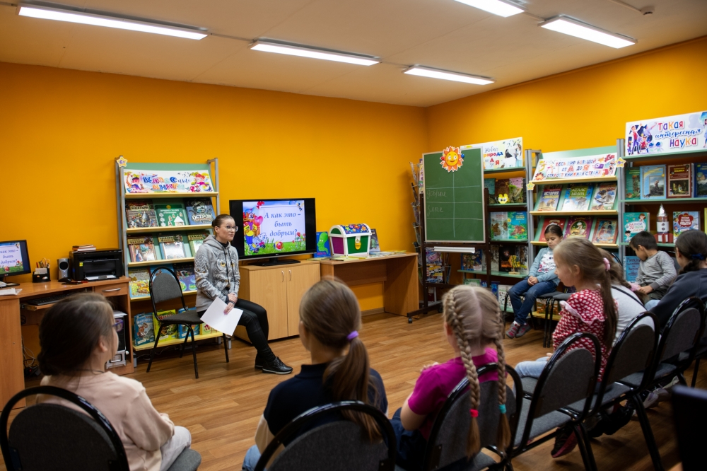 Сегодня в филиале № 5 Центральной городской детской библиотеки (просп. Героев-североморцев, 27) прошло увлекательное мероприятие для маленьких читателей. Сотрудники учреждения провели познавательную игровую программу «Добрый мир в руках детей».