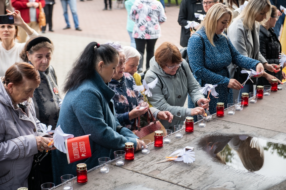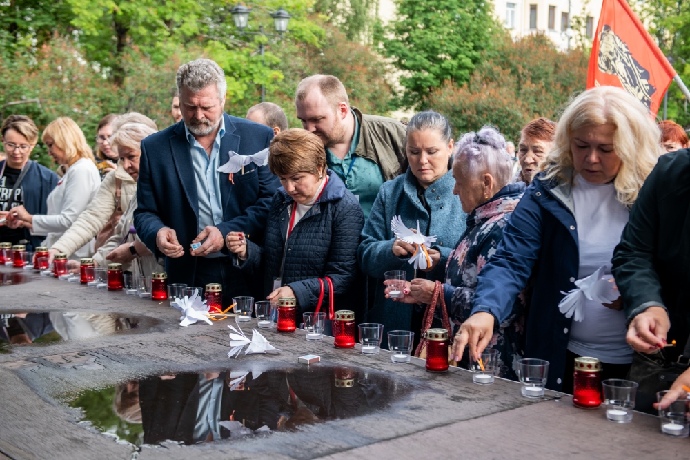 Символом акции стали белые шары, бумажные голуби, детские игрушки. Мурманчане зажгли свечи, почтив память ушедших ангелов Донбасса.