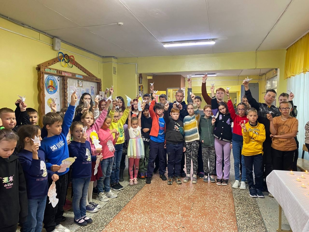 Городские оздоровительные лагеря также организовали памятные мероприятия. Школьникам рассказали о детях, погибших в Донецкой Народной Республике. В память о трагических событиях воспитанники лагеря на базе школы № 20 (ул. Баумана, 20) изготовили на мастер-классах белых журавликов, символизирующих надежду на мир без войны, и разместили их на тематических стендах.