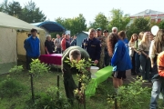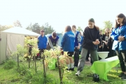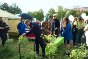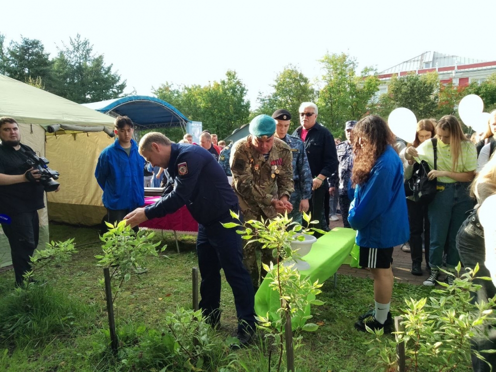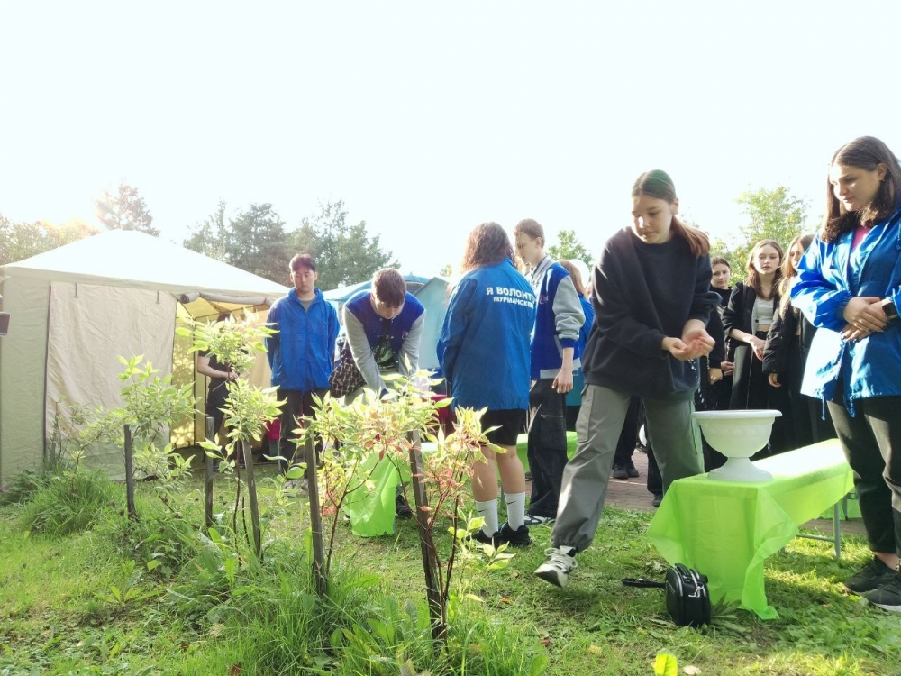 В память о сотнях заложников, которые три дня обходились без воды в руках террористов, мурманчане набрали воду из чаши в сложенные лодочкой ладони и полили растения из рук, отдавая дань памяти жертвам Беслана.
