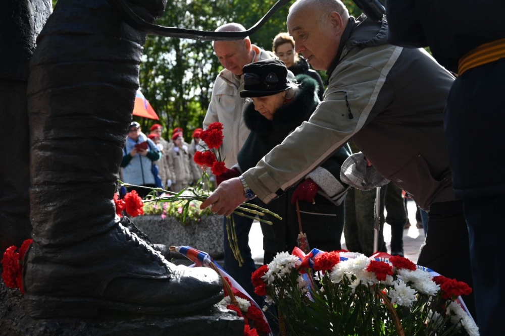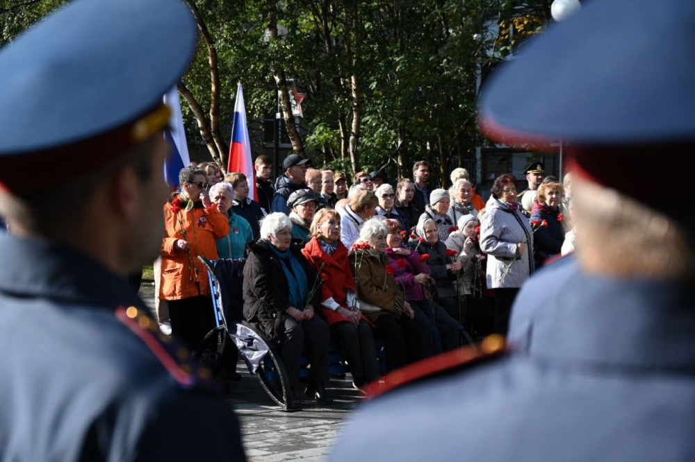 В ходе митинга собравшиеся почтили память защитников Заполярья минутой молчания и возложили к мемориалу цветы.