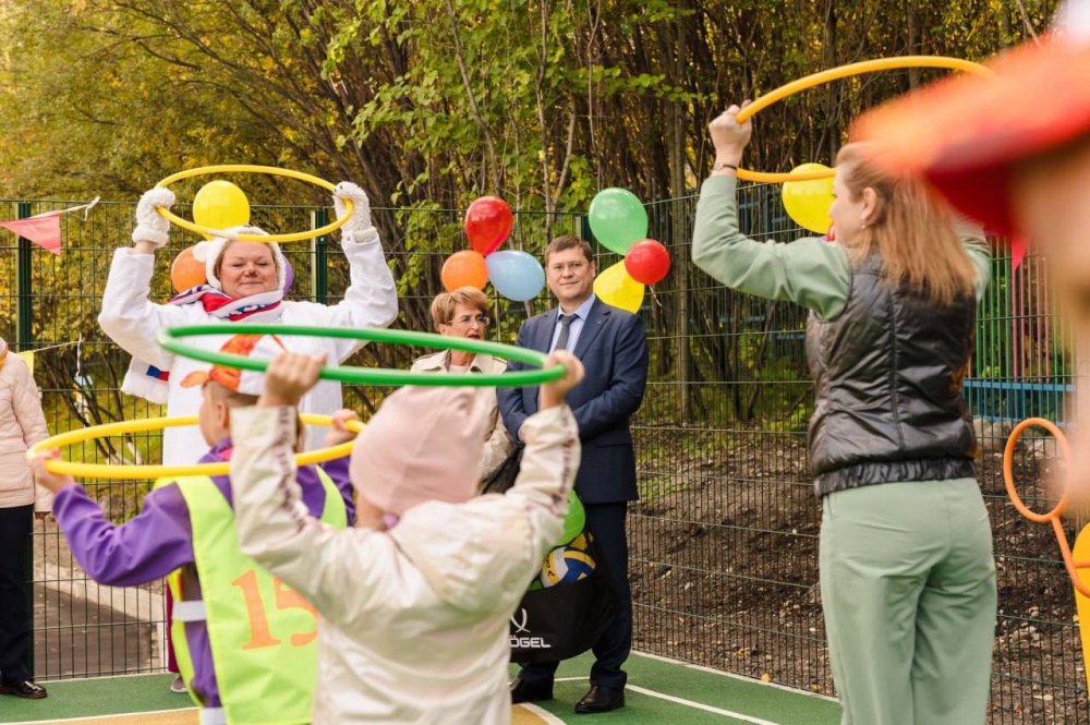 Сегодня в МБДОУ №157 (ул. Морская, 13) прошел праздник, посвященный открытию на территории организации детской спортивной площадки. Дошкольное учреждение в 2023 году стало одним из победителей конкурса «На Севере – твой проект», инициированного губернатором Андреем Чибисом.