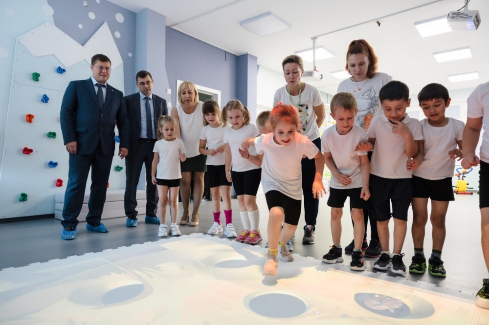 В детском саду № 125 ремонт прошел в помещении спортивного зала. Здесь появился современный физкультурный комплекс, а интерактивный пол и проектор позволяют увлечь занятиями физкультурой каждого воспитанника.